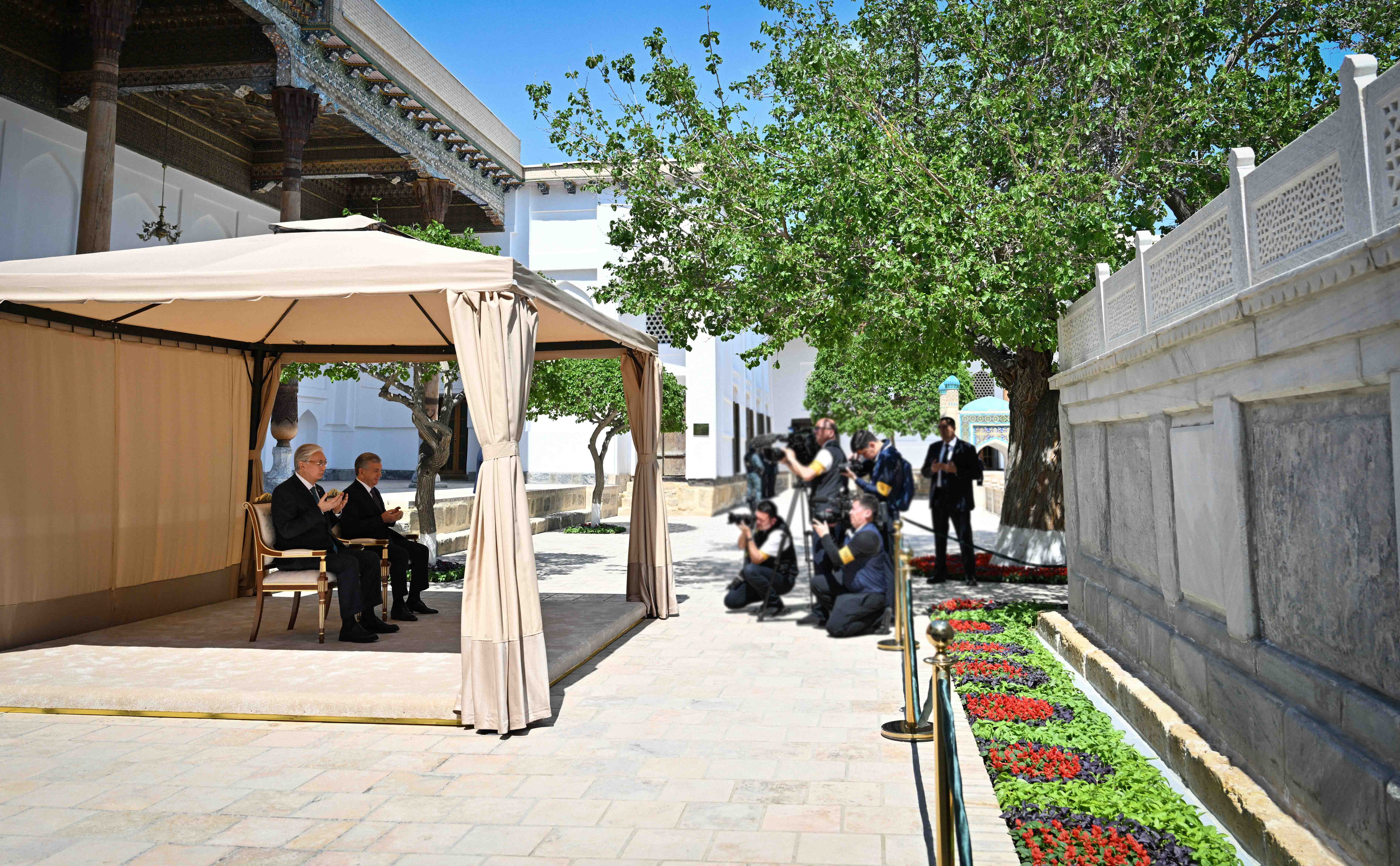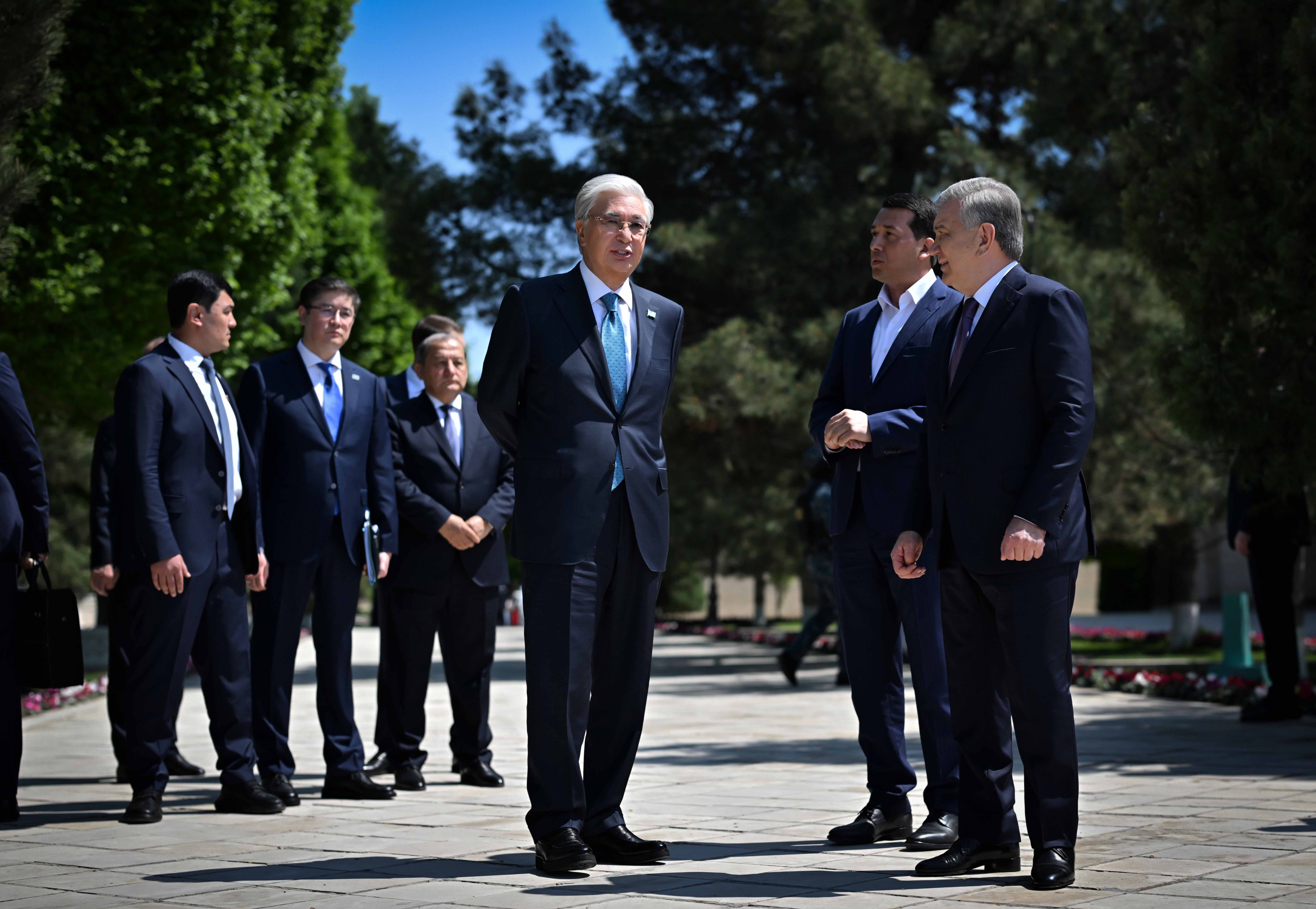 Қасым-Жомарт Тоқаев пен Шавкат Мирзиёев Бахауддин Нақышбанди мемориалдық кешеніне барды