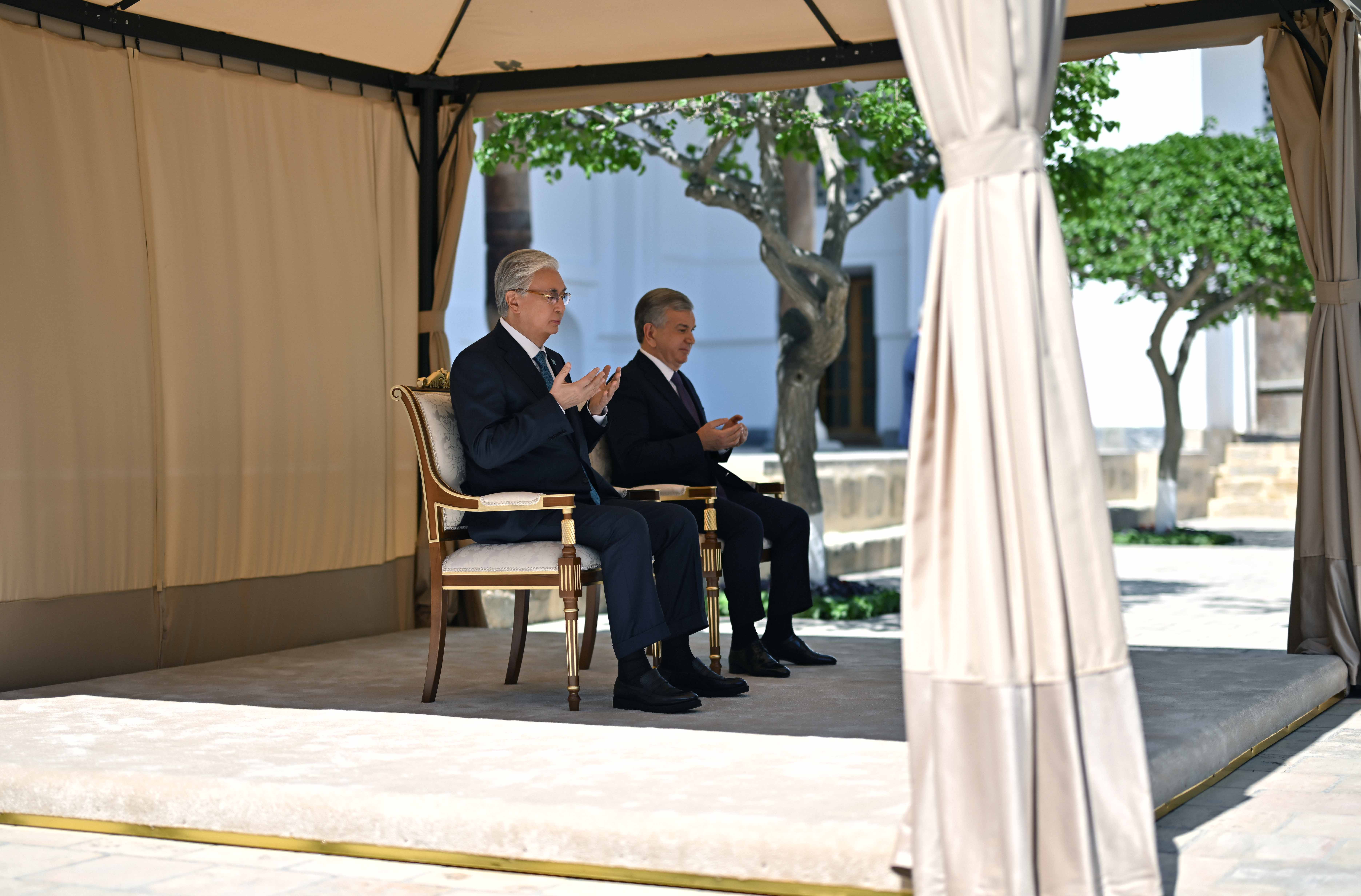 Қасым-Жомарт Тоқаев пен Шавкат Мирзиёев Бахауддин Нақышбанди мемориалдық кешеніне барды