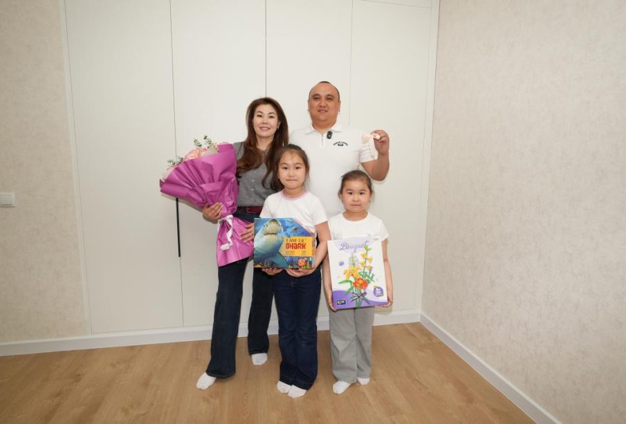 Жаңартылған екі бөлмелі пәтердің кілті Астана қаласы ТЖД Техникалық нормалау бөлімінің бас маманы Олжас Кәкімовтың отбасына берілді.